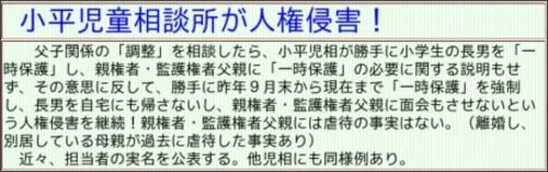 4月12日付で「東村山市民新聞」のトップページが更新され(2010/04/11 19:28:10)、〈緊急告知〉として次の囲みが登場しました。 東村山市民新聞 via kwout 小平児童相談所が人権侵害! 父子関係の「調整」を相談したら、小平児相が勝手に小学生の長男を…